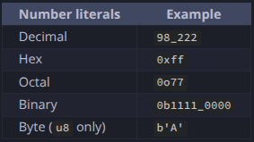 Scalar data type is a subset of data type that consists of exactly 1 value. Rust has 4 primary scalar data types: